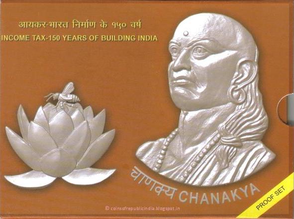 The coins minted under the authority of the Central Government, commemorate “Income Tax – 150 years of Building India.” The reverse faces of the coins bear the portrait of “Chanakya and Lotus with Honeybee” at the centre representing his famous lines;